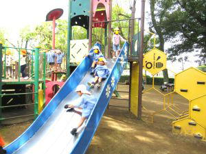 広場には大きなすべり台も